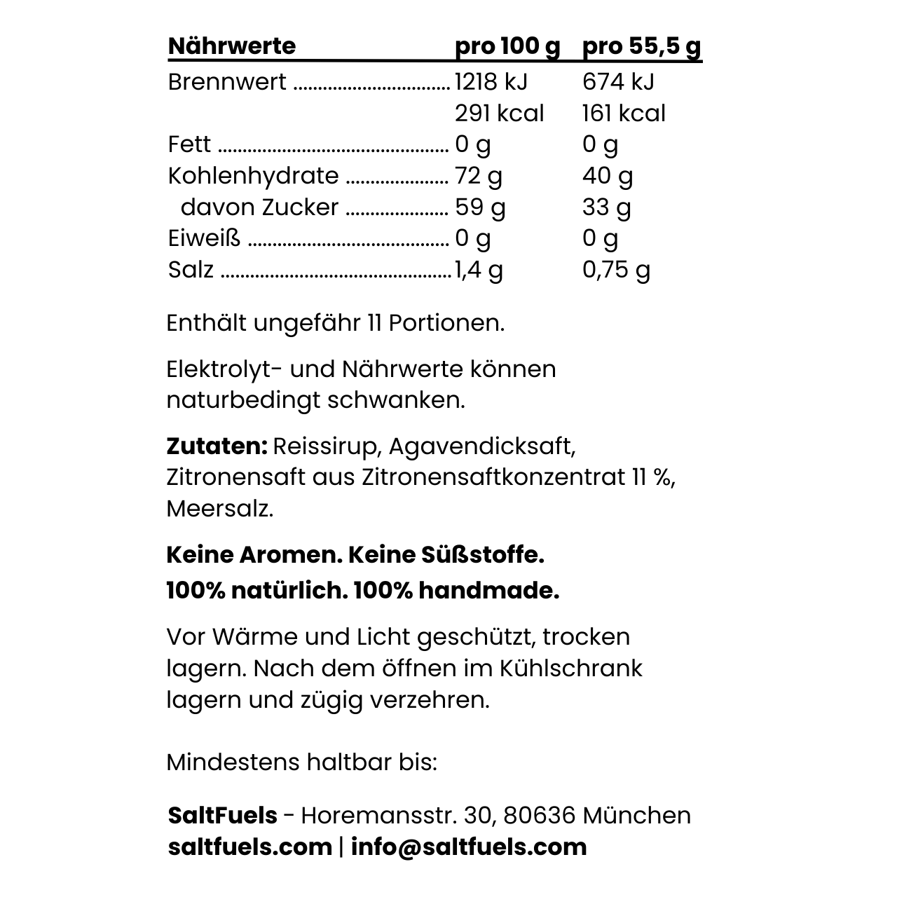 - Hoher Salzgehalt (0,8 g) → ersetzt Elektrolyte, die du beim Schwitzen verlierst